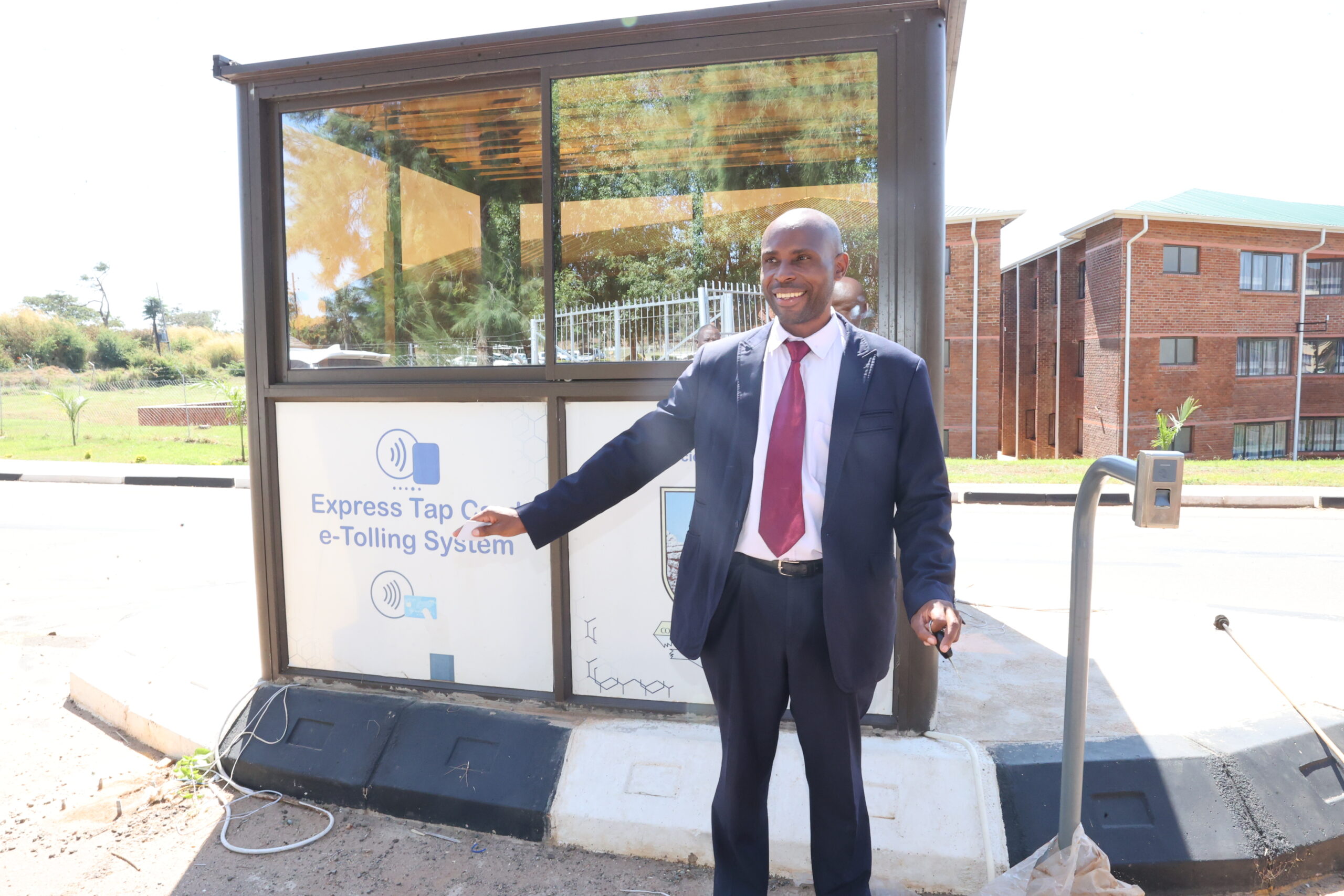 Prof Courtie Mahamadi, BUSE’s Director of Research and Innovation, demonstrates how the university’s landmark e-tolling system works