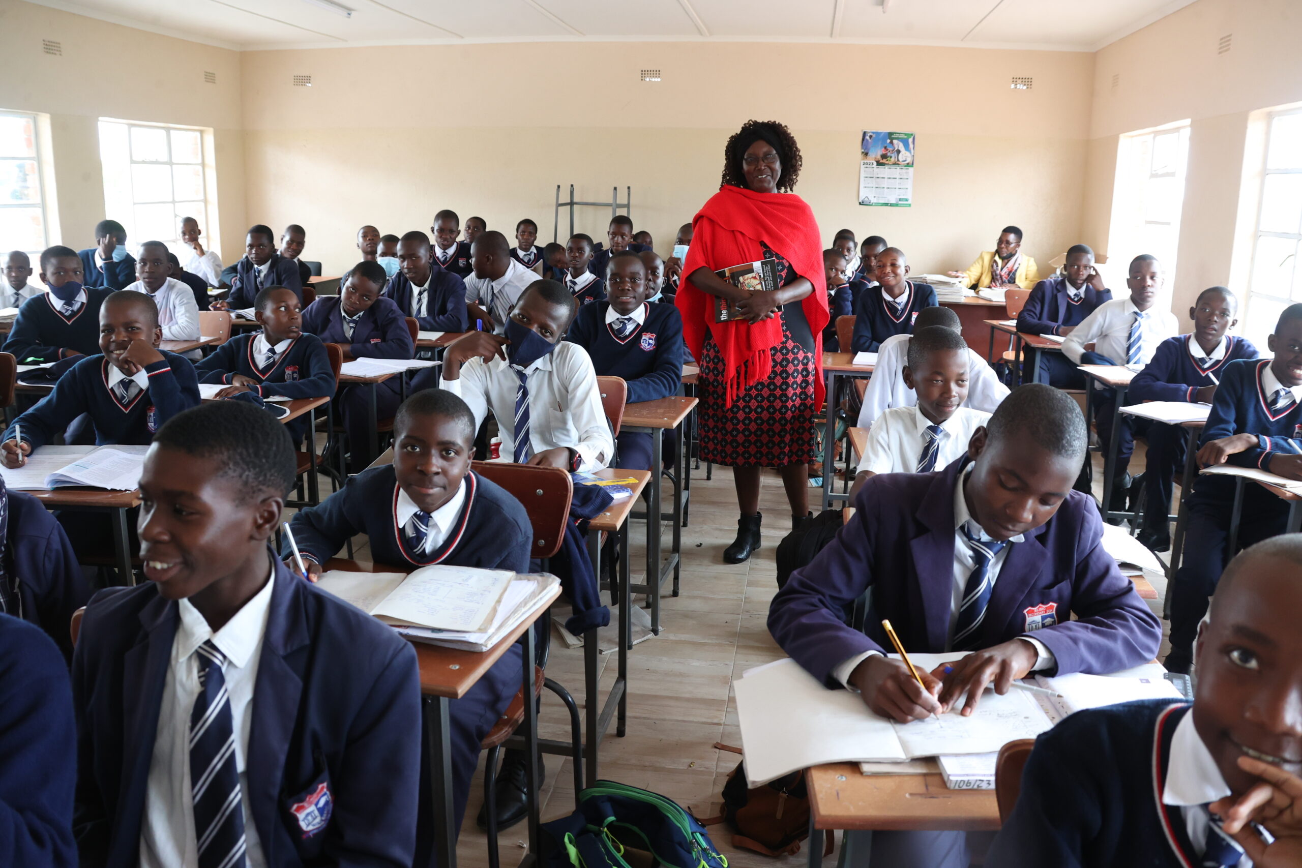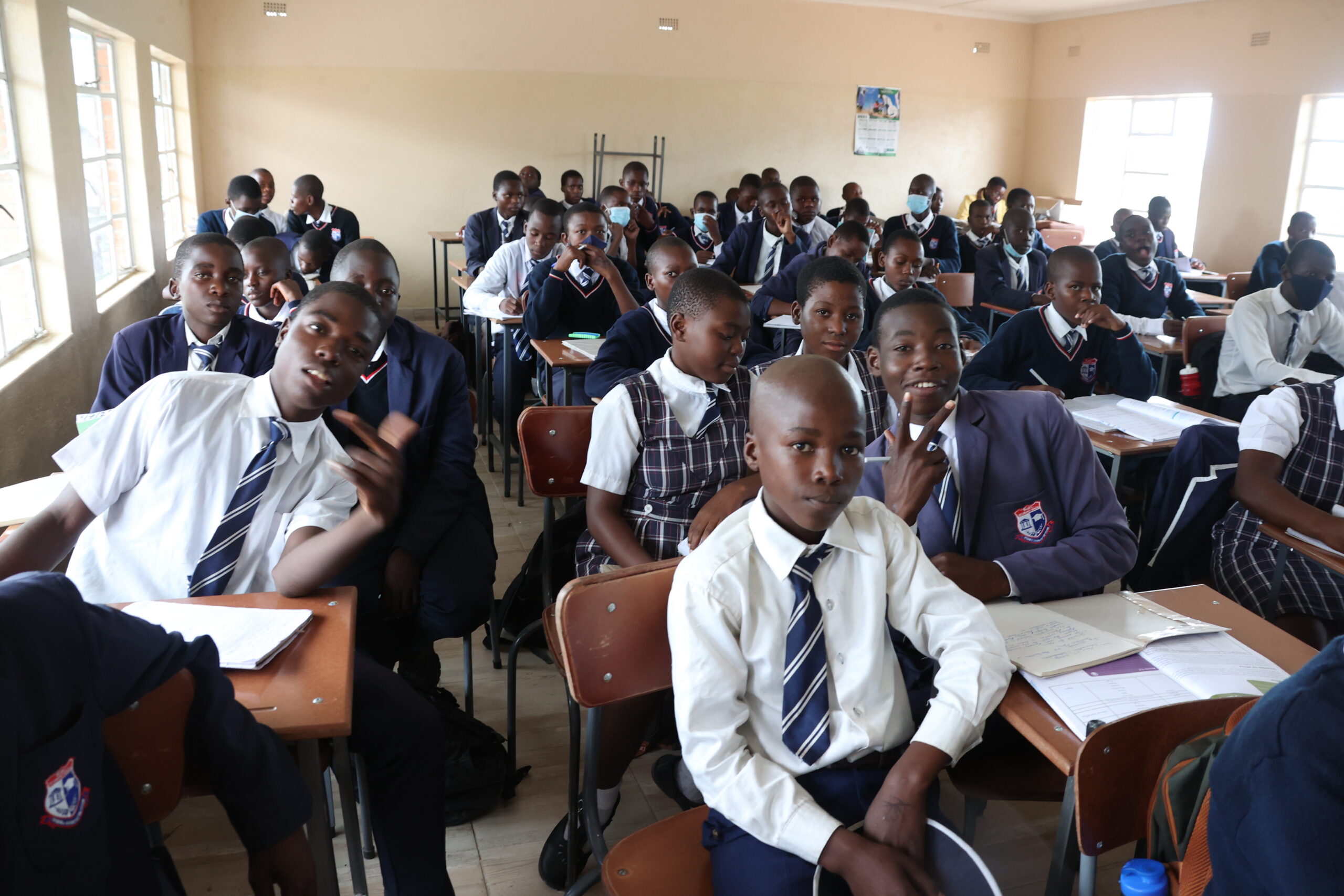 As the only secondary school in the suburb (divided into Rujeko A, B, C), it is supplied with leaners from 2 primary schools. The first thing that hits you on arrival at the school is the lack of space. There are too many students, 50 to 52, squeezed into a class, instead of the normal 40, maximum 46. Cheek by jowl is the phrase.